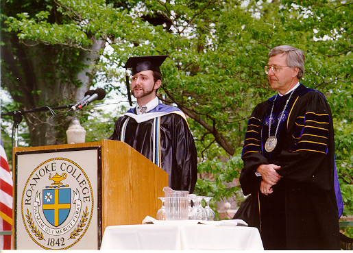 Gavin at his Roanoke College graduation on May 8, 1999. Delivering his speech as Senior Class President.