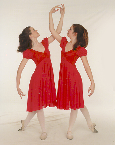 Maere and Georgie posing for Lexington School of Dance studio portraits, March 27, 1999. Georgie is on the right.