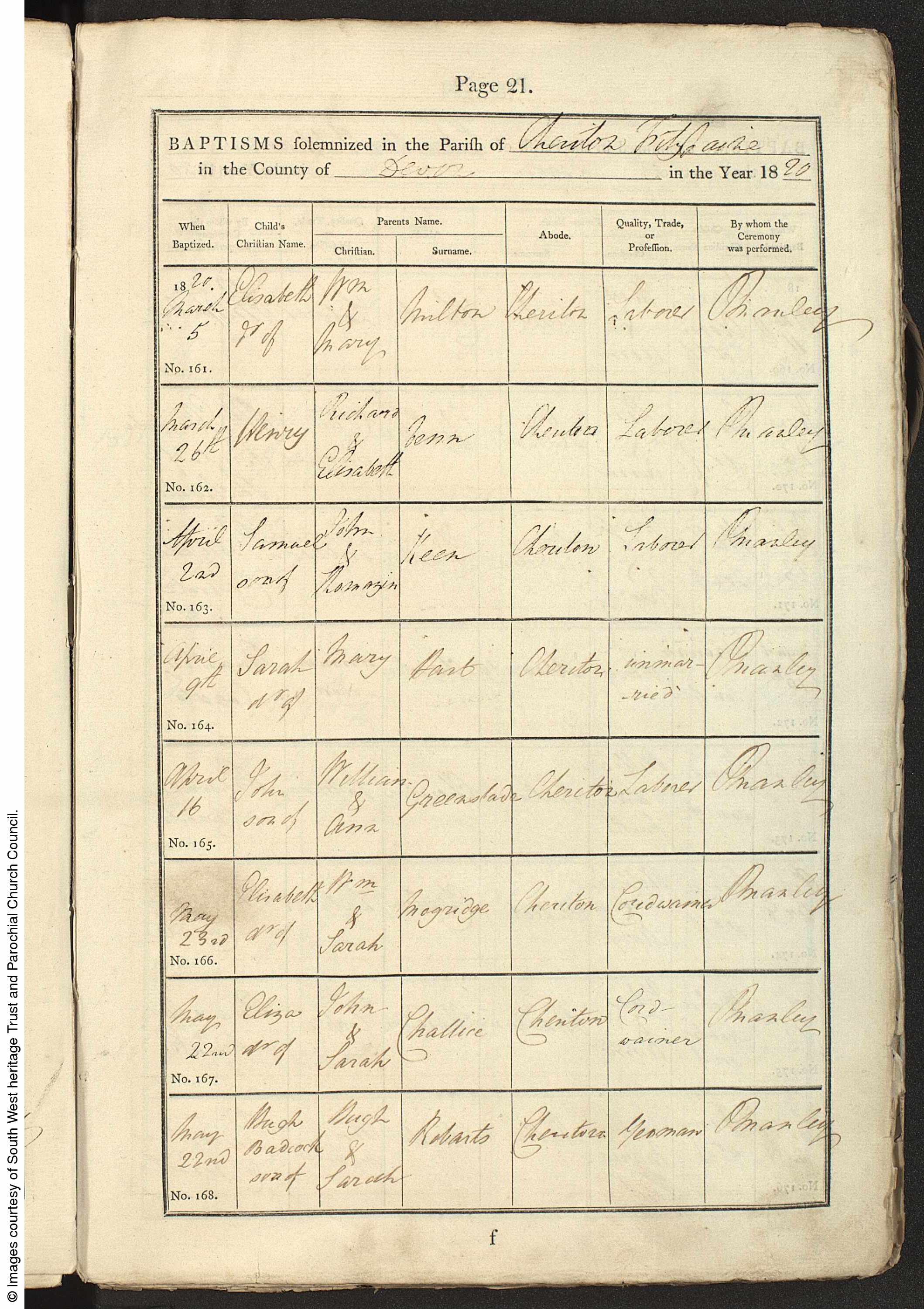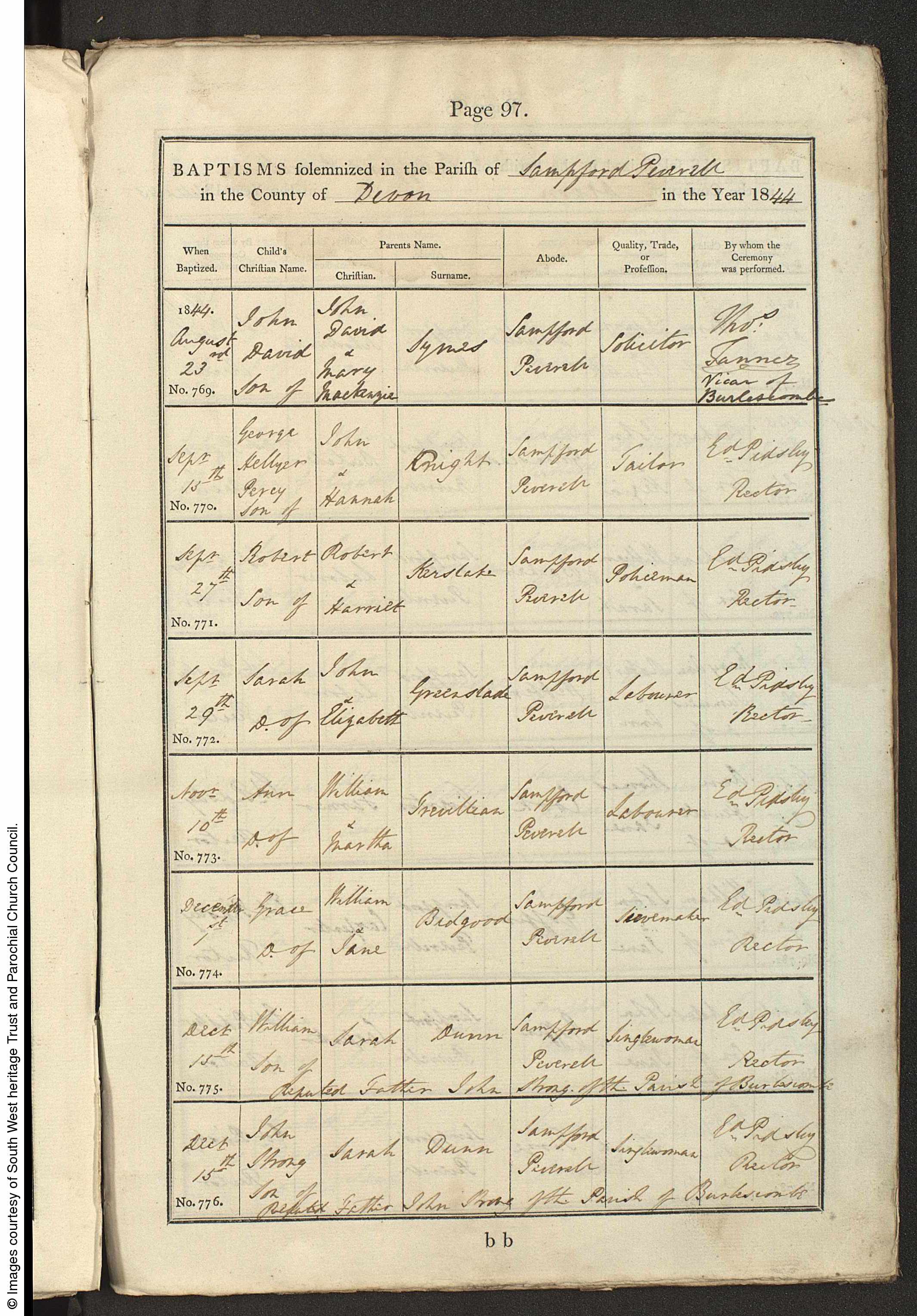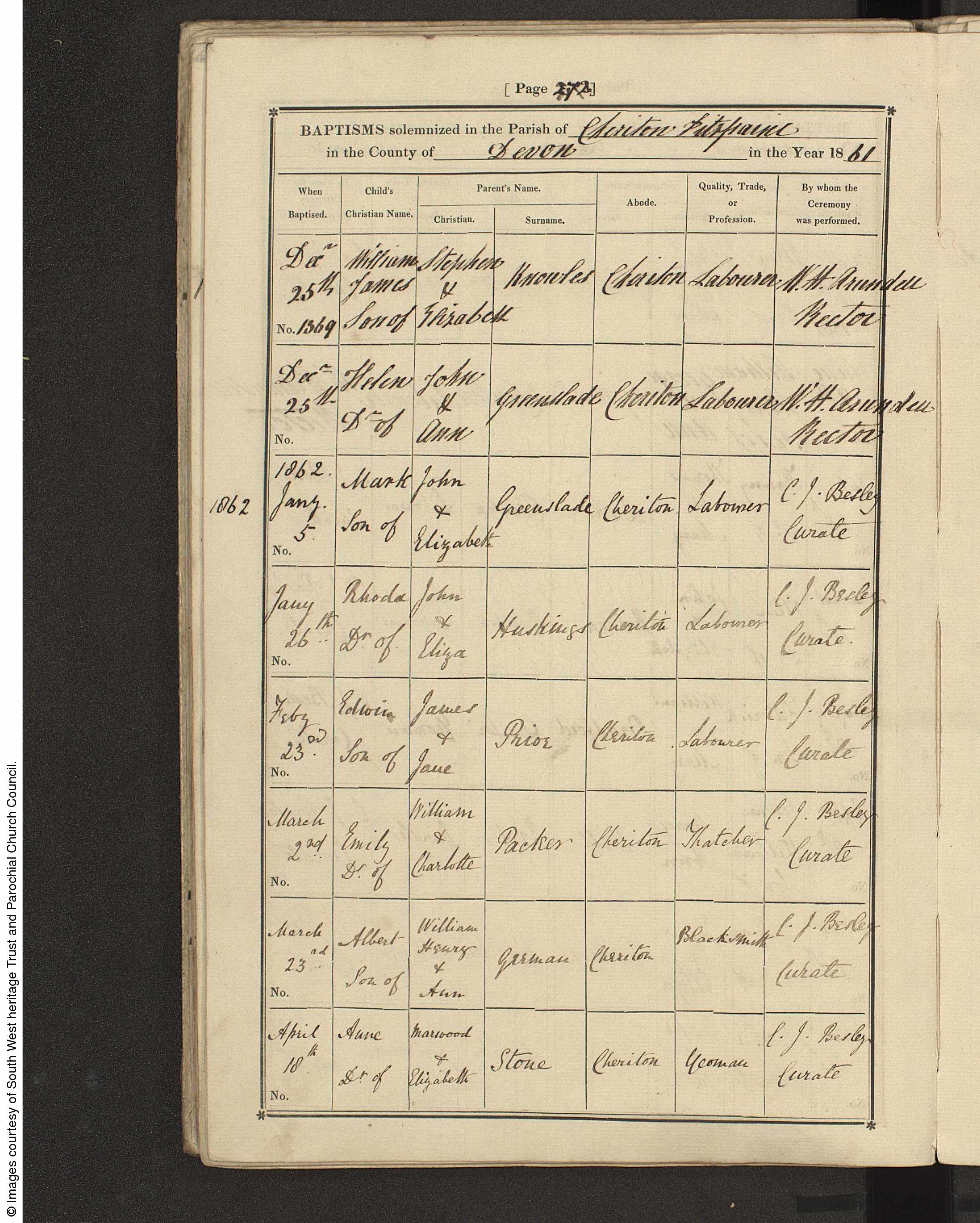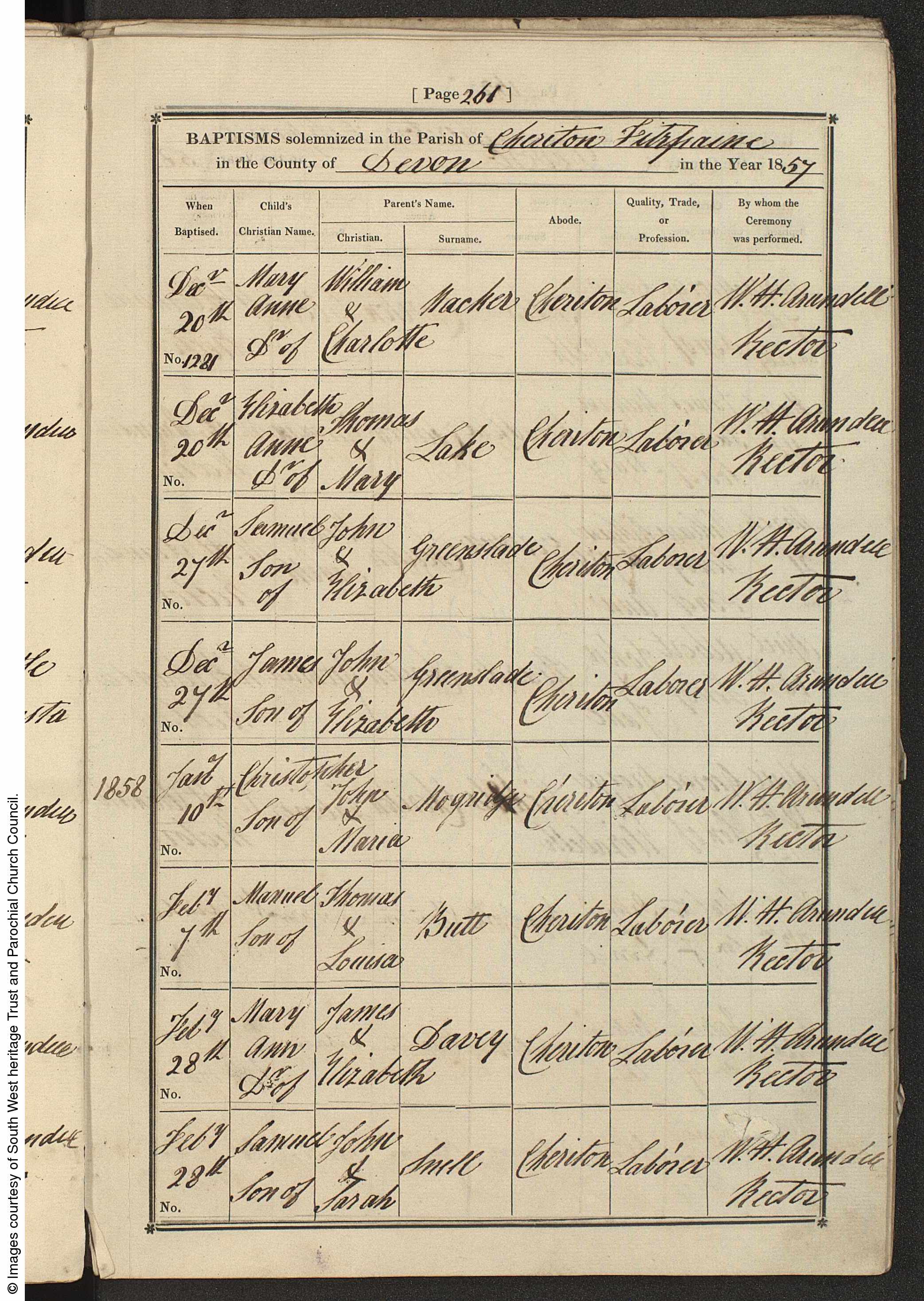 | Baptised | December 27, 1857 | Cheriton Fitzpaine (see record) | |