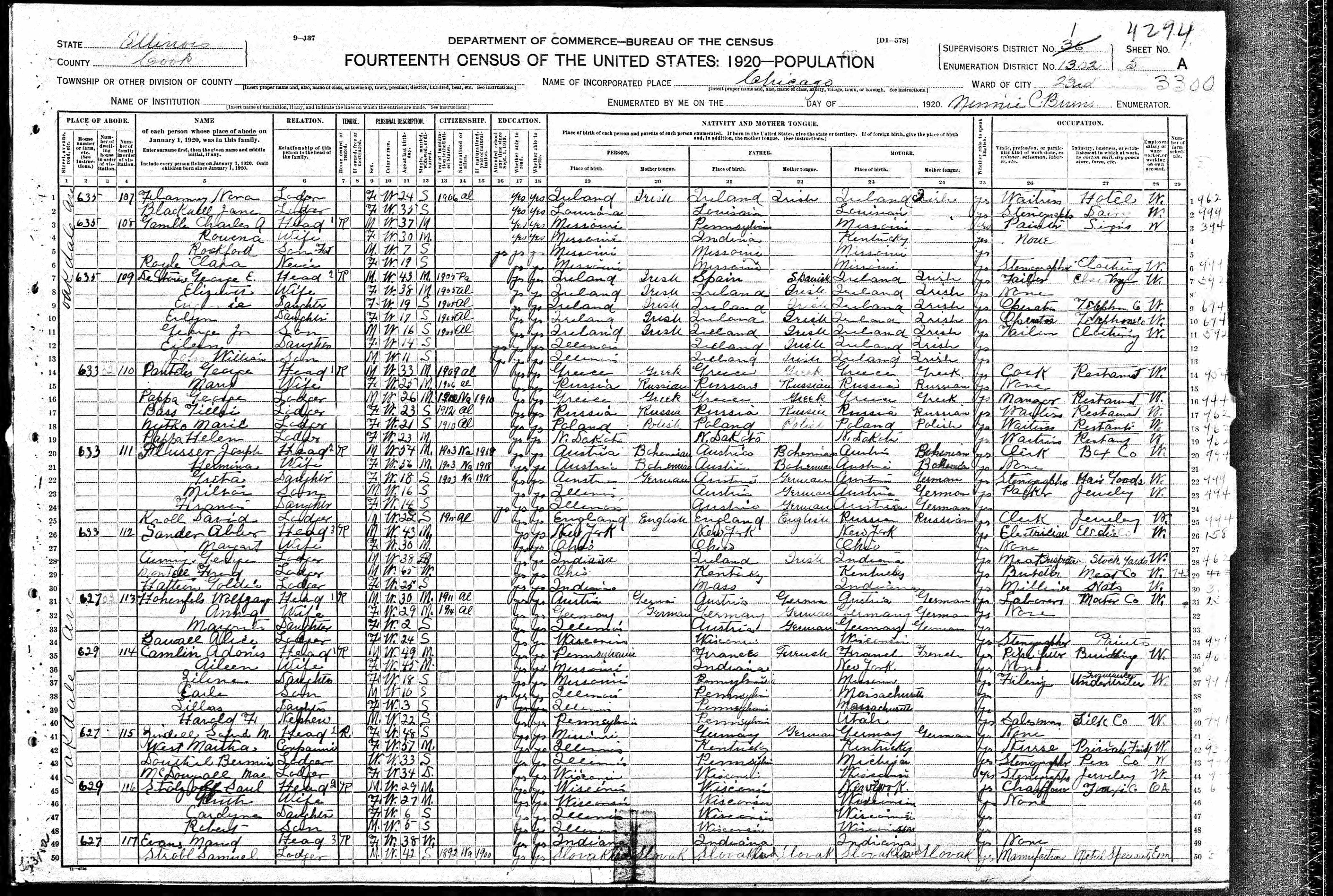 | Born | April 7, 1874 | Youghal, Co. Cork (Chicago death record gives birth date of April 7) |