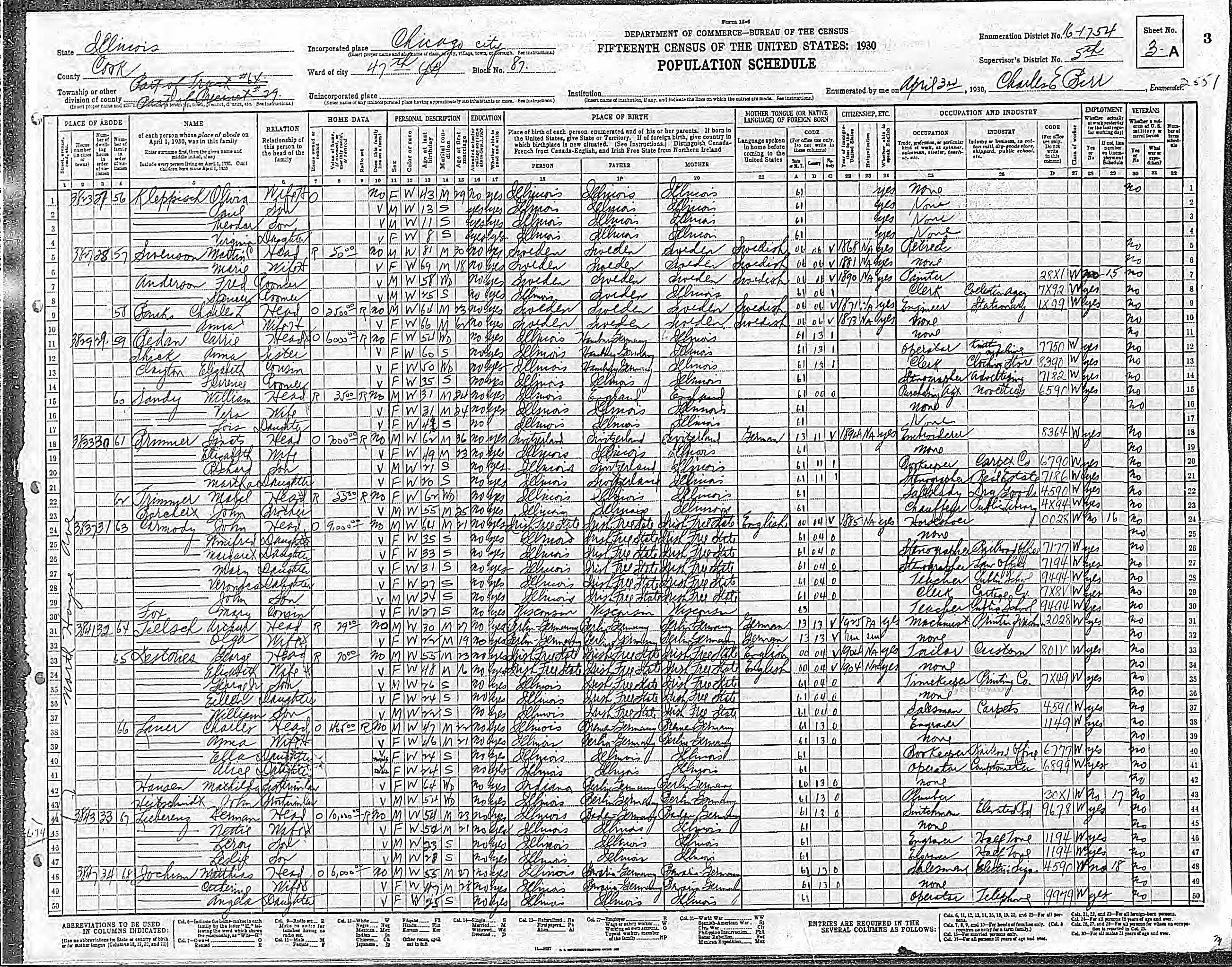| Died | March 14, 1934 | Chicago (source: Cook County death records, File Number: 6007600) |