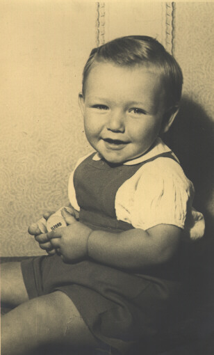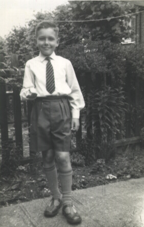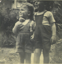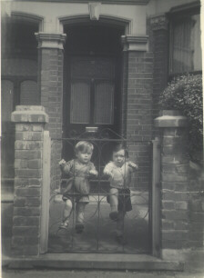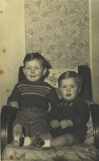 | picture | John and Brian, just before leaving Hannah's for Jim and Kitty's first house at 27 Crossfield Rd., Tottenham, Middlesex. |