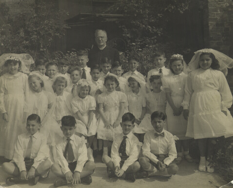 | picture | John's first communion group picture. John is third from the left at the back. |