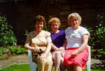 Sally (drinking) Kitty standing behind Isobel, in 1997. Pictured in